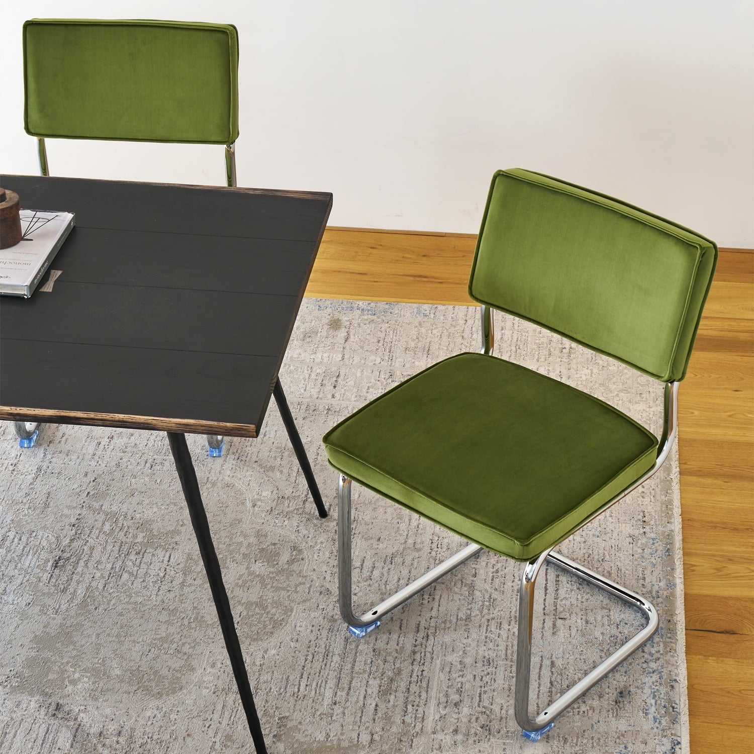 Green Velvet Dining Chairs,Mid Century Morden Dining Chairs, Minimalistic Style Kitchen & Dining Room Chairs, Upholstered Comfort Chairs with Chrome Metal Legs, set of 2